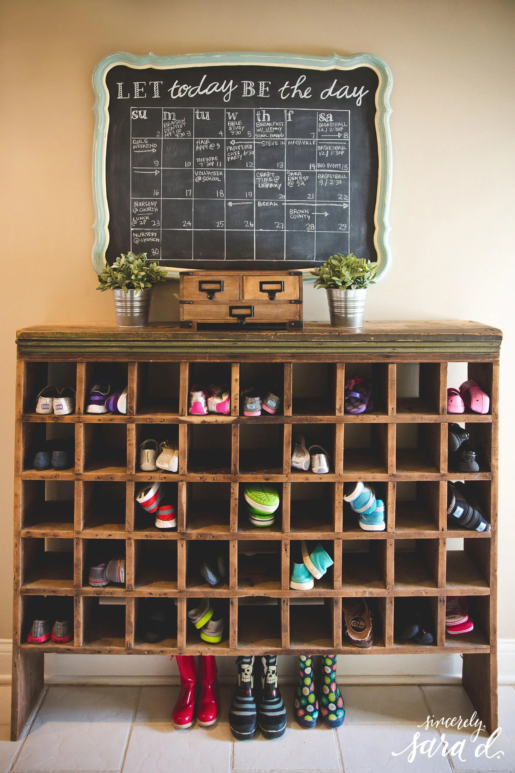 Step into any big box home store and you’ll find two dozen shoe storage options, from stackable organizers to hanging canvas cubbies. The perfect option for you is a matter of taste and space, but let’s be serious: However many shoe cubbies you think your family should need, the truth is probably three times that amount. That’s why we’re partial to this clever solution from Sara Davis, who transformed an old wooden mail sorter — found at a local antique shop — into a gorgeous, 45-slot shoe cubby.